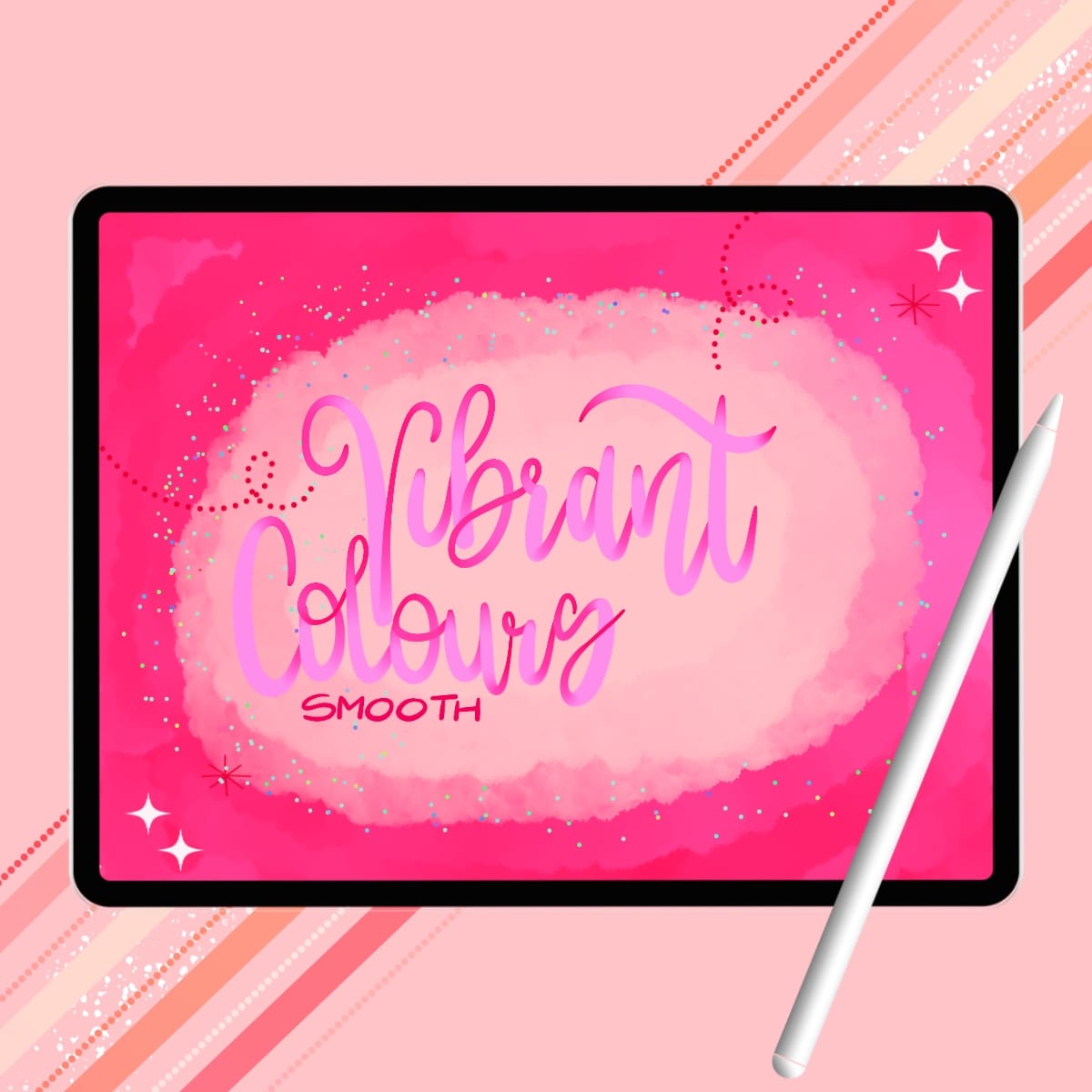 Unleash your creativity with the Vibrant Colours Smooth | Perfect for Lettering & Calligraphy Art for Procreate! This brush is perfect for lettering and calligraphy art. Whether you’re an experienced calligrapher, lettering artist or just starting out, this individual brush delivers smooth, fluid strokes, making your lettering projects come alive.